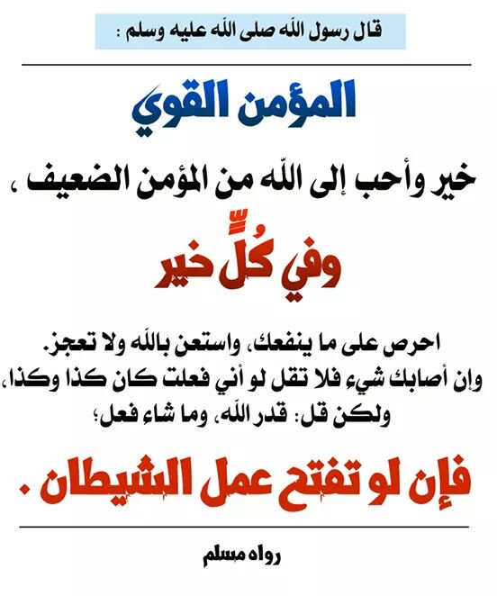 المؤمن القوي خير وأحب إلى الله من المؤمن الضعيف قال رسول الله صلى الله عليه وسلم المؤمن القوي خير وأحب إلى ال Learn Arabic Language Peace Be Upon Him Words