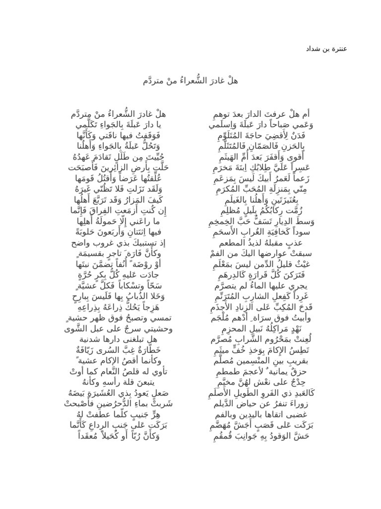 عنترة بن شداد هل غادر الش عراء من مترد م