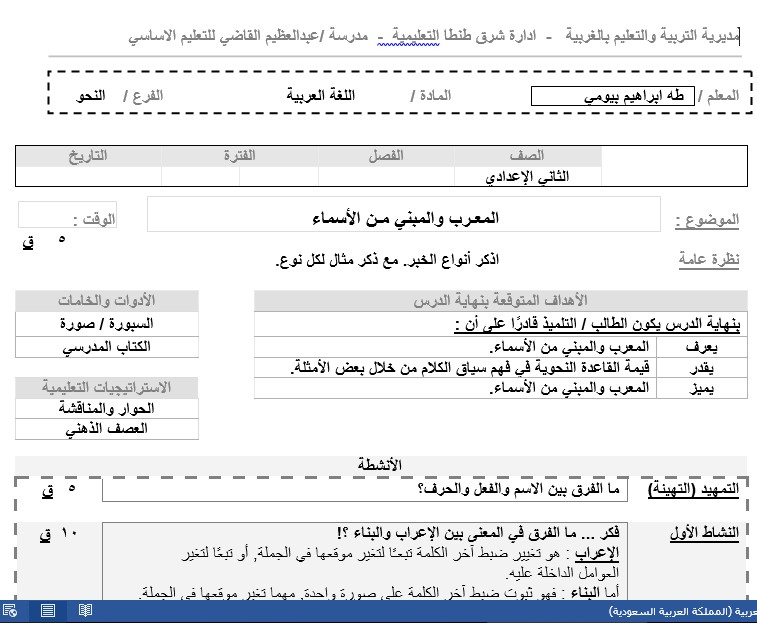 دفتر تحضير الدروس لغة عربية Pdf