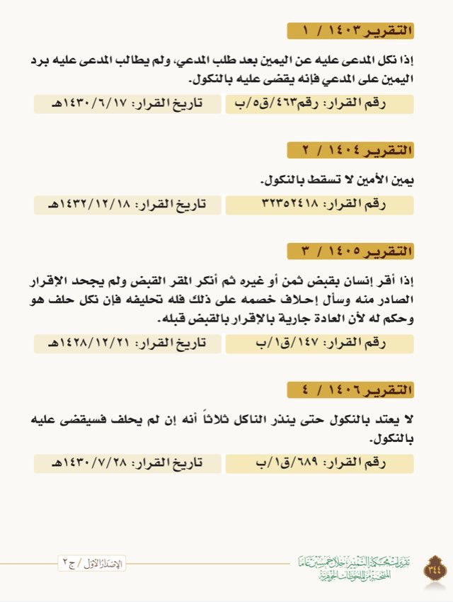 2 إن نكل المدعى عليه أو سكت فلا يقضى عليه بالنكول ولكن ترد اليمين على المدعي فيحلف ثم يأخذ حقه. ويجب التمييز بين ما يثبت باليمين وما لا يثبت بها فهي تسعى إلى إثبات كل طلب يكون الحق المدعى به فيه من حقوق البشر الخالصة مثل المال أو ما يؤول إلى المال فإن لم تكن هناك بينة للمدعي على ثبوت دعواه حلف المدعى عليه وتمت. ما حكم النكول عن اليمين في إثبات. ويطلب البينة من المدعي قرر أنه لا بينة لديه وطلب يمين المدعى عليه على نفي دعواه فنكل عن أدائها بعد إنذاره ثلاث مرات بأنه إن لم يؤد اليمين فإنه ي عد ناكا ويقضى عليه بالنكول ولذا فقد حكم القاضي بتعزير المدعى عليه بالجلد.